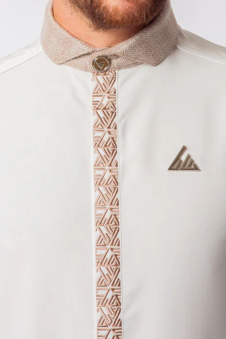 The AA23012 offers classic style with a modern twist. Crafted with organic cotton, it features a slim fit design, superior white fabric and a tweed neck and cuffs. Decorated with a monogram strip and a large branded button, it's available in kids sizes too for that perfect father and son combination.
