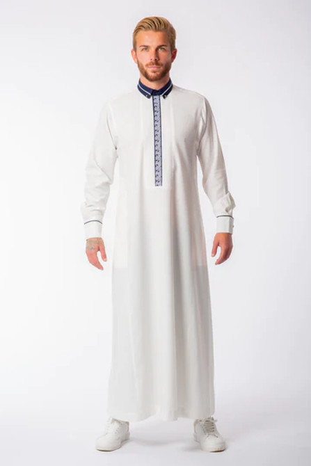 AA23017 shirt is designed for the fashion-forward man. With its classic tux style, branded monogram, printed blue neck and white detailing, premium white fabric, silver tie pin, detailed cuffs and stud buttons, this shirt is sure to make an impression.